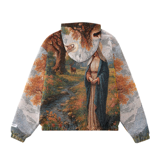 "HOLY MANTLE" TAPESTRY JACQUARD FABRIC DOUBLE-ZIP HOODIE