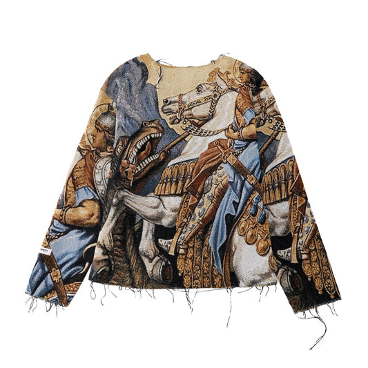 "ST. GEORGE" TAPESTRY JACQUARD FABRIC FRAYED SWEATER
